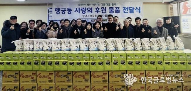 (한국글로벌뉴스 - 박소연 기자) 수원시 팔달구 행궁동은 지난 6일 설 명절을 맞아 ‘행궁동 사랑의 후원 물품 전달식’을 개최했다. 이번 전달식에는 설 명절을 앞두고 행궁동 취약계층을 위해 후원 물품을 기부한 행궁동 주민자치회를 비롯한 단체장들과 후원자들이 참석해 이웃 나눔의 의미를 함께 했다.