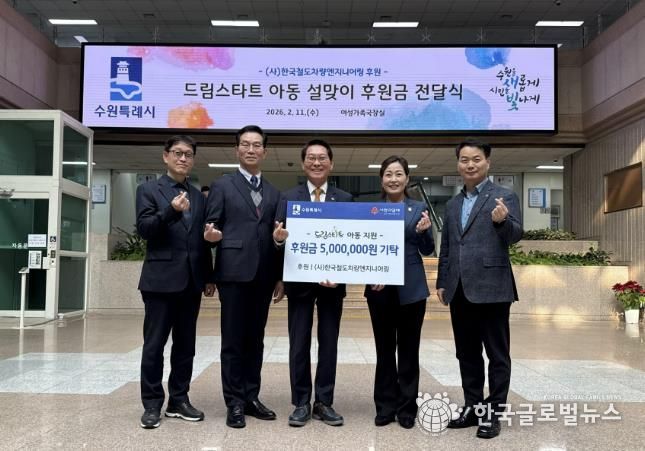 (한국글로벌뉴스 - 박소연 기자) (사)한국철도차량엔지니어링이 설을 맞아 “수원시 드림스타트 아동을 위해 사용해 달라”며 후원금 500만 원을 기부했다.
