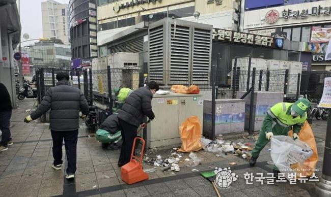 (한국글로벌뉴스 - 박소연 기자) 수원시 팔달구는 지난 11일, 민족 최대의 명절인 설을 앞두고 유동 인구가 집중되는 수원역 일원에서 쾌적한 거리 환경 조성을 위한 ‘합동 환경정비 활동’을 전개했다.