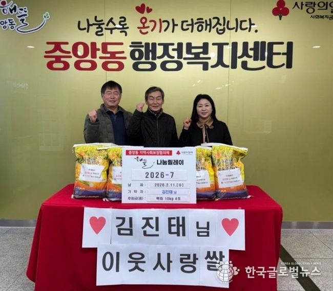 백경희 중앙동장은 “명절을 맞아 이웃을 먼저 생각하며 나눔을 실천해주신 김진태 통장님께 깊이 감사드린다”며 “이러한 주민들의 자발적인 참여와 관심이 복지사각지대 해소에 큰 힘이 되고 있다”고 전했다.