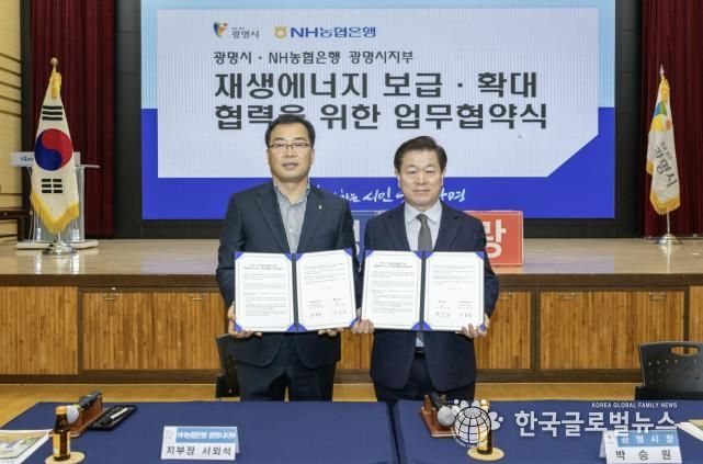 시는 13일 시청 대회의실에서 NH농협은행 광명시지부와 ‘재생에너지 보급·확대 및 사회공헌 연계 업무협약’을 체결했다.