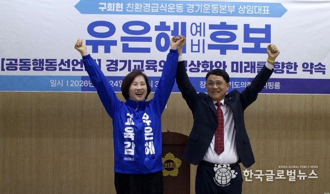 구희현 상임대표와 유은혜 예비후보는 이날 경기도의회 브리핑룸에서 기자회견을 갖고 공동 지지선언문을 통해 “교육행정과 교육현장을 아우르는 풍부한 경험을 바탕으로 ‘삶과 현장 중심의 교육 복원’과 ‘무너진 경기교육 정상화’라는 비전에 깊이 공감한다”며 “신뢰와 책임을 바탕으로 경기교육 혁신을 위한 공동행동을 추진하겠다”고 강조했다.