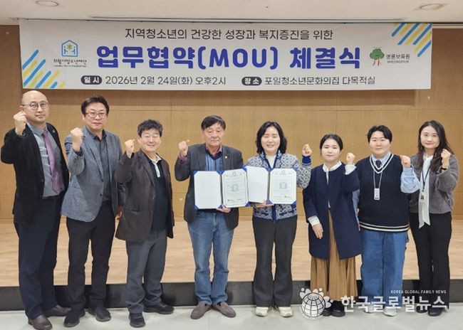 (한국글로벌뉴스 - 박소연 기자) 의왕시청소년재단이 2월 24일, 지역청소년의 건강한 성장과 복지 증진을 위해 명륜보육원과 포일청소년문화의집 다목적실에서'지역 청소년의 건강한 성장을 위한 업무협약'을 체결했다.
