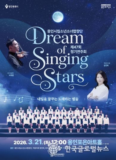 (한국글로벌뉴스 - 박소연 기자) 용인문화재단은 오는 3월 21일 용인포은아트홀에서 용인시립소년소녀합창단 제47회 정기연주회'Dream of Singing Stars'를 개최한다고 밝혔다.