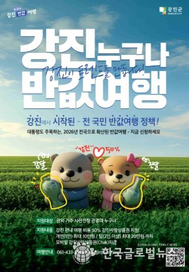 특히 이번 사업은 강진군이 선도적으로 추진해 전국적 주목을 받았던 ‘반값여행’ 정책을 정부가 제도화한 것으로, 전남이 지역관광 활성화 정책의 선도 모델을 제시했다는 점에서 의미가 크다.