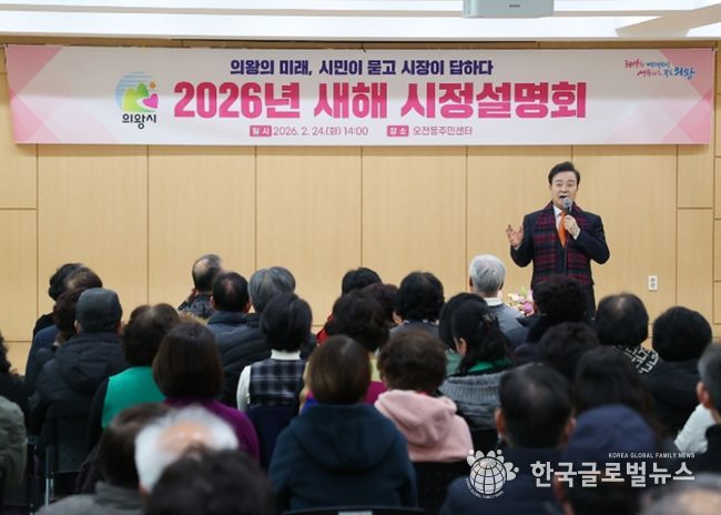 (한국글로벌뉴스 - 박소연 기자) 의왕시는 2월 19일부터 27일까지 6개 동 주민센터에서 개최된 ‘2026년 새해 시정설명회’를 성공적으로 마무리했다. 이번 설명회에는 총 800여 명의 시민이 참석하며 높은 관심을 모았으며, 시장이 직접 각 동을 방문해 주민들과의 대화를 나누는 형식으로 진행됐다.