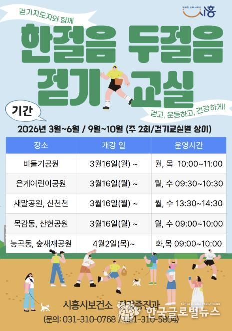 (한국글로벌뉴스 - 박소연 기자) 시흥시는 시민들의 일상 속 걷기 실천을 장려하고 건강생활 습관 형성을 돕기 위해 ‘한 걸음 두 걸음 걷기교실’을 운영한다.