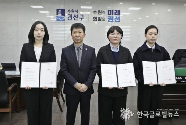 (한국글로벌뉴스 - 박소연 기자) 수원시 권선구는 지난 5일, 권선구청 2층 집무실에서 신규 공직자 3명이 참석한 가운데 임용장 수여식을 개최했다.