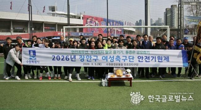 (한국글로벌뉴스 - 박소연 기자) 수원시 장안구 여성축구단은 지난 5일, 수원종합운동장 인조잔디구장에서 선수단과 관계자 등 30여 명이 참석한 가운데 2026년 안전기원제를 진행했다.