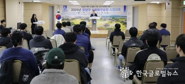 (한국글로벌뉴스 - 박소연 기자) 수원시 팔달구는 지난 5일 팔달구청 대회의실에서 사회복무요원 전원을 대상으로 2026년 상반기 소양교육을 실시했다.
