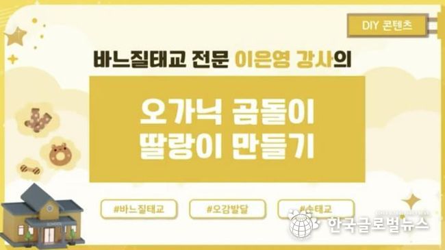또한 3강은 엄마의 소근육 운동과 함께 아기의 두뇌 발달과 정서적 교감을 돕는 손수 제작(DIY) 손태교 교육으로 진행된다. 양평군보건소는 선착순 40명을 모집해 손수 제작(DIY) 바느질 태교 재료(곰돌이 딸랑이 만들기)를 자택으로 배송할 예정이며, 참여자는 동영상 강의를 보며 2주간 교육을 받을 수 있다.