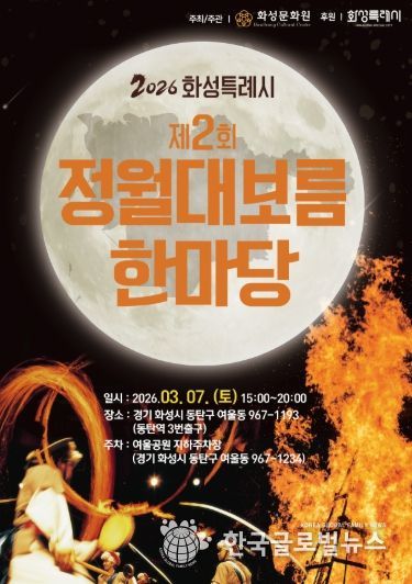 (한국글로벌뉴스 - 박소연 기자) ‘2026년 화성특례시 제2회 정월대보름 한마당’이 오는 3월 7일 오후 3시부터 8시까지 동탄역 3번 출구 앞 광장에서 열린다.