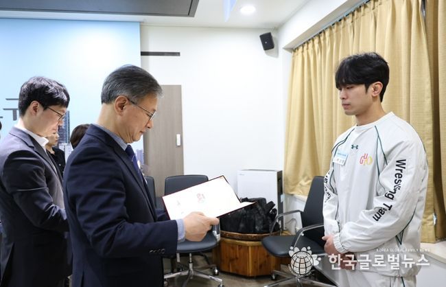 (한국글로벌뉴스 - 박지형 기자) 구로구는 3월 6일 오전 11시 구청 르네상스홀에서 ‘구로구청 직장운동경기부 신규 선수 입단식’을 열고 2026년 신규 임용된 레슬링팀 선수 3명과 배드민턴팀 감독·코치 및 선수 6명을 공식 소개했다.
