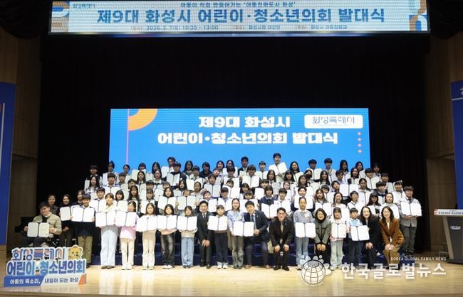 (한국글로벌뉴스 - 박소연 기자) 화성특례시는 지난 7일 시청 대강당에서 제9대 어린이‧청소년의회 발대식을 개최했다.