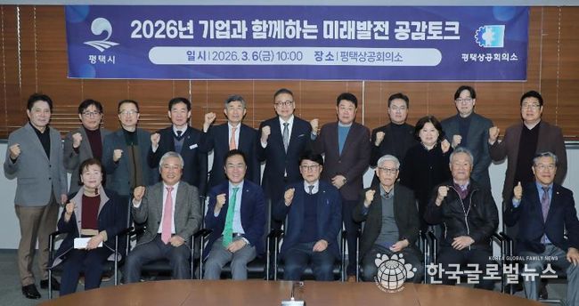 (한국글로벌뉴스 - 박소연 기자) 평택시는 3월 6일 평택상공회의소에서 '시민과 함께하는 미래발전 공감토크'를 개최하고 지역 기업인들과 평택시 발전 방향에 대해 소통하는 시간을 가졌다.
