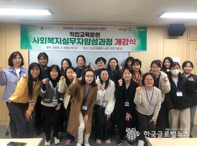 (한국글로벌뉴스 - 박소연 기자) 오산시는 지난 9일 오산고용복지+센터 내에 위치한 오산여성새로일하기센터에서 경력보유여성의 직업 역량 강화와 재취업 지원을 위한 직업교육훈련 ‘사회복지실무자 양성과정’ 개강식을 개최했다고 밝혔다.