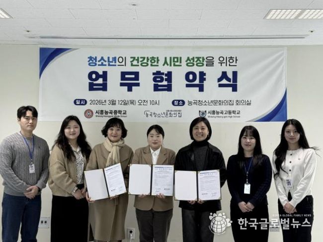 (한국글로벌뉴스 - 박소연 기자) 시흥시청소년청년재단의 시흥시능곡청소년문화의집은 지난 3월 12일 시흥시능곡청소년문화의집 회의실에서 시흥능곡중학교, 시흥능곡고등학교와 청소년이 건강한 시민으로 성장할 수 있는 기반 마련을 위한 상호 업무협약을 체결했다.