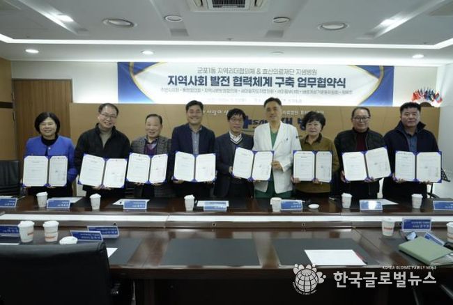 (한국글로벌뉴스 - 박소연 기자) 군포1동 지역리더협의체(주민자치회 등 7개 단체)와 효산의료재단 지샘병원은 지역사회 건강증진 및 상호 협력 강화를 위해 3월 12일 지샘병원에서 업무협약(MOU)을 체결했다.