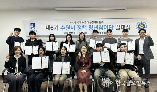 (한국글로벌뉴스 - 박소연 기자) 수원특례시는 12일 아주대학교 율곡관에서 ‘제6기 수원시 정책 청년참여단’ 발대식을 열었다.