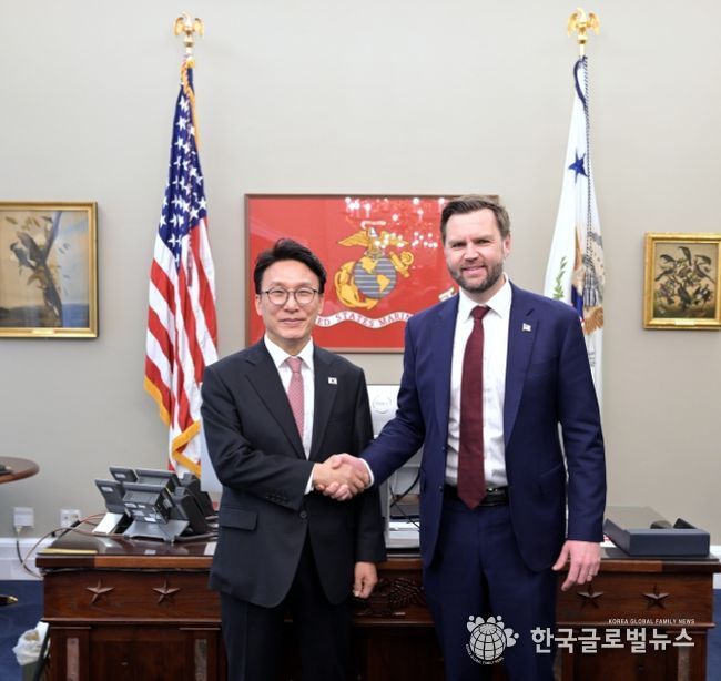 (한국글로벌뉴스 - 박소연 기자) 김민석 국무총리는 미국 방문 첫째 날인 3월 12일 오후, 워싱턴 D.C. 백악관에서 'J.D. 밴스(James David Vance)'미국 부통령과 회담을 가졌다. 지난 1월 밴스 부통령과의 첫 회담 이후 약 50일 만에 개최된 회담이다.