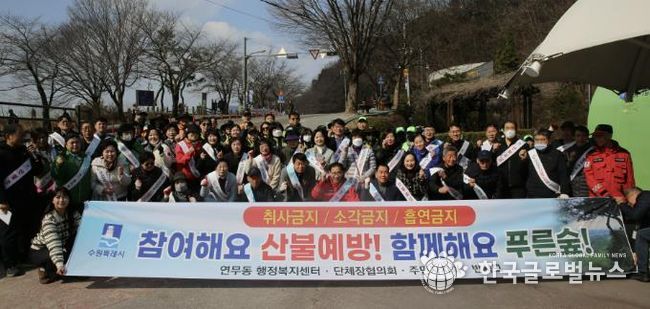 (한국글로벌뉴스 - 박소연 기자) 수원시 장안구 연무동은 지난 12일, 광교산 일대에서 등산객과 지역 주민을 대상으로 ‘광교산 산불 예방 캠페인’을 실시하며 봄철 산불 예방 홍보 활동을 전개했다.