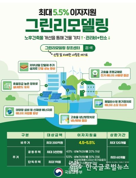 (한국글로벌뉴스 - 박경희 기자) ■ 그린리모델링, 최대 5.5% 이자 지원