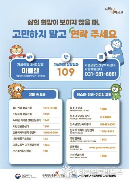 (한국글로벌뉴스 - 박소연 기자) 가평군정신건강복지센터와 자살예방센터가 봄철 자살 위험 증가에 대응해 집중 예방 활동에 나섰다.