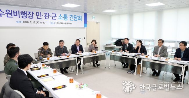 (한국글로벌뉴스 - 박소연 기자) 수원특례시의회는 19일 의회 세미나실에서 공항 소음피해지역 주민들과 군, 시 관계자가 함께하는 ‘민·관·군 소통 간담회’를 개최하고 소음피해 해소를 위한 실질적인 대응 방안 마련에 나섰다.