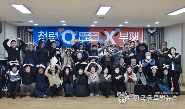 (한국글로벌뉴스 - 박소연 기자) 안성시 안성2동은 19일 관내 기관사회단체장 및 통장, 주민자치위원 등 50여 명이 참석한 가운데 ‘모두의 청렴 OX 퀴즈’ 행사를 성공적으로 개최했다고 밝혔다.