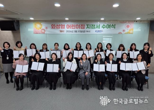 (한국글로벌뉴스 - 박소연 기자) 화성특례시는 민간·가정 어린이집의 공공성과 전문성을 강화하기 위한 ‘화성형어린이집’ 20개소를 선정하고 20일 지정서 수여식을 마쳤다. 화성특례시는 지난 2022년부터 보육 서비스의 질을 높이고자 화성형어린이집을 선정해 지원을 이어오고 있다.