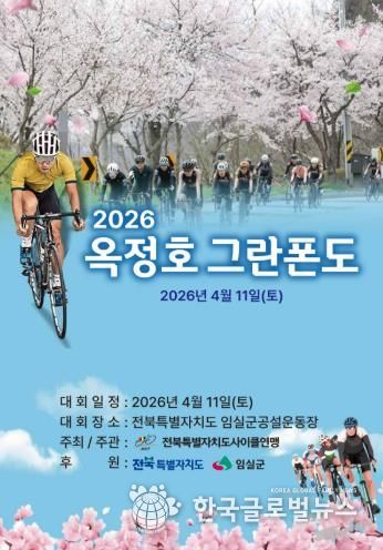 (한국글로벌뉴스 - 박지형 기자) 임실군이 벚꽃으로 둘러싸인 옥정호를 배경으로 자전거 라이딩의 매력을 만끽할 수 있는‘2026 옥정호 그란폰도‧메디오폰도 대회’를 오는 4월 11일‘옥정호 벚꽃축제’와 연계해 개최한다.