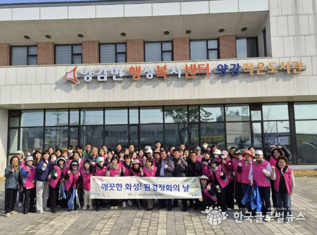 (한국글로벌뉴스 - 박소연 기자) 화성시여성단체협의회는 봄을 맞아 24일 양감면을 찾는 방문객에게 쾌적한 환경을 제공하고 지역 내 환경 보호 문화를 확산시키기 위해 환경정화 활동을 했다.