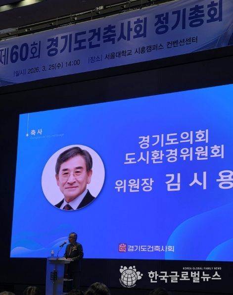 (한국글로벌뉴스 - 박소연 기자) 경기도의회 도시환경위원회 김시용 위원장(국민의힘·김포3)은 25일 경기도건축사회 제60회 정기총회에 참석해 건축 분야 발전을 위해 헌신해 온 관계자들에게 감사와 격려의 뜻을 전했다.