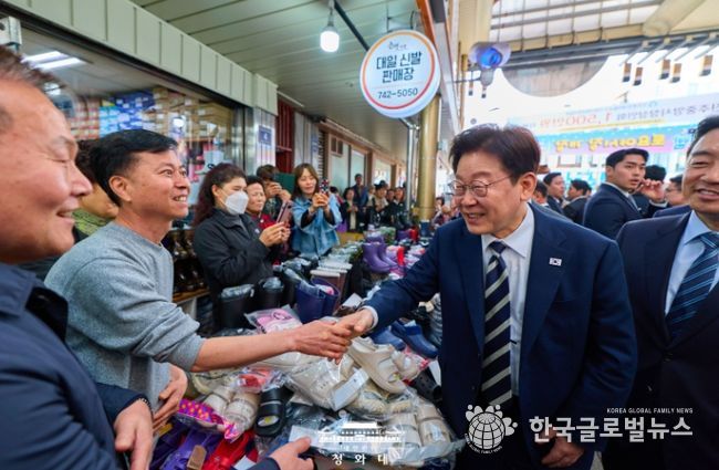 (한국글로벌뉴스 - 박소연 기자) 이재명 대통령은 25일 오후 한국항공우주산업(KAI)에서 열린 KF-21 양산 1호기 출고식에 참석한 뒤 경남 진주시에 위치한 진주중앙시장을 깜짝 방문해 민심을 청취했다.
