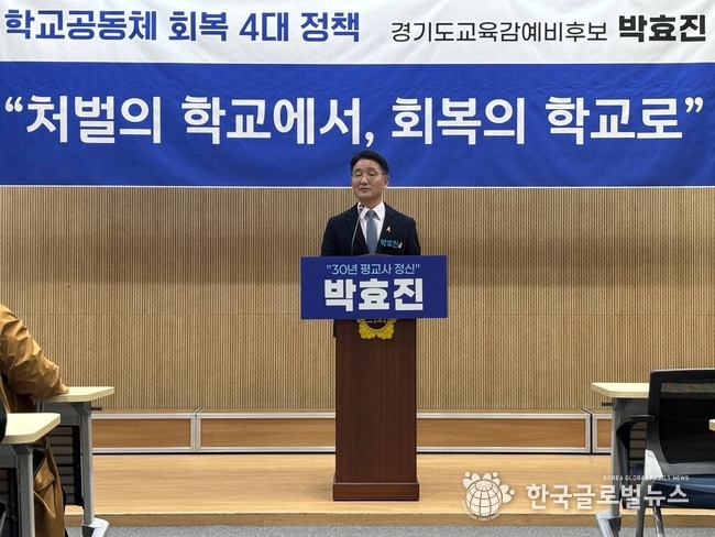 (한국글로벌뉴스 -박소 기자) 박효진 경기도교육감 예비후보가 학교 현장의 ‘사법화’를 강하게 비판하며, 갈등을 교육적으로 해결하는 ‘학교공동체 회복’ 공약을 제시했다.