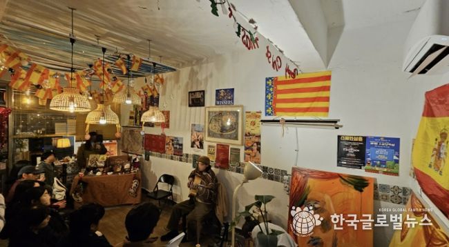 골목에 위치한 작은 가게에는 스페인 국기 가랜드와 FC바르셀로나 팀기, 각종 모임과 공연 포스터, 감각적인 유화작품들이 여기저기 걸려있다. 제멋대로인 듯 일종의 규칙과 문화를 품고 있는 공간을 보고 있노라면 주인장의 정체가 궁금해진다.