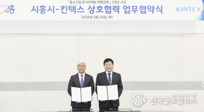(한국글로벌뉴스 - 박소연 기자) 시흥시는 지난 3월 26일 킨텍스 제1전시장에서 킨텍스와 ‘중소기업 전시마케팅 역량 강화를 위한 상호협력 협약’을 체결했다.