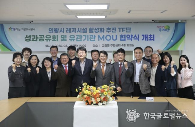 (한국글로벌뉴스 - 박소연 기자) 의왕도시공사는 3월 26일 ‘레저시설 활성화 추진 TF단’ 최종 보고회를 개최하고, 지역 내 주요 레저·관광 기관들과 함께 ‘의왕시 레저·관광 활성화를 위한 다자간 업무협약(MOU)’을 체결했다고 밝혔다.
