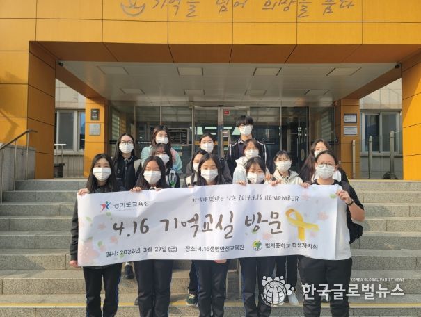 (한국글로벌뉴스 - 박소연 기자) 안양 범계중학교(교장 박경숙) 학생자치회 학생 20여 명은 3월 27일에 세월호 참사의 교훈을 되새기고 생명 존중 문화를 확산하기 위해 경기도교육청 4.16생명안전교육원(안산시 단원구 소재)을 방문했다. 이번 방문은 매년 범계중학교에서 진행되는 ‘국민 안전의 날’ 행사 진행에 앞서 학생자치회가 주도적으로 기획했다. 12년이라는 시간이 지나 학생들이 ‘세월호 사건’을 잘 체감하지 못하는 것을 인식하고 이를 먼저 느끼고 알리고자 한 것이다.