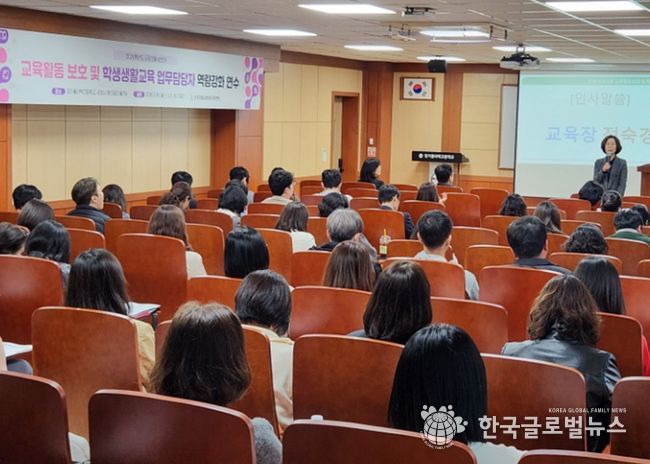 (한국글로벌뉴스 - 박소연 기자) 군포의왕교육지원청은 3월 30일부터 31일까지 이틀간 관내 유·초·중·고 교감 및 업무 담당 교원을 대상으로 ‘교육활동 보호 및 학생생활교육 업무담당자 역량강화 연수’를 개최했다.
