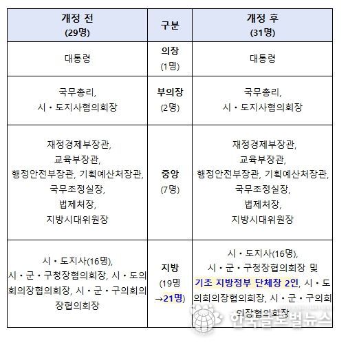 시행령 개정의 주요 내용은 협력회의 내 기초 지방정부 단체장 구성원이 기존 1명에서 3명으로 총 2명을 확대하는 것이다.