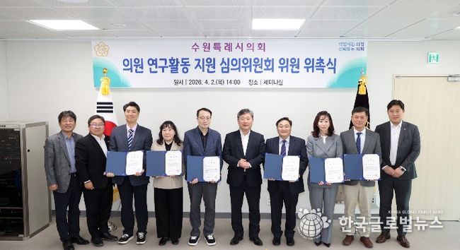 (한국글로벌뉴스 - 박소연 기자) 수원특례시의회는 지난 2일 의회 세미나실에서 수원시의회 의원 연구활동 지원 심의위원회 위원 위촉식을 개최했다.