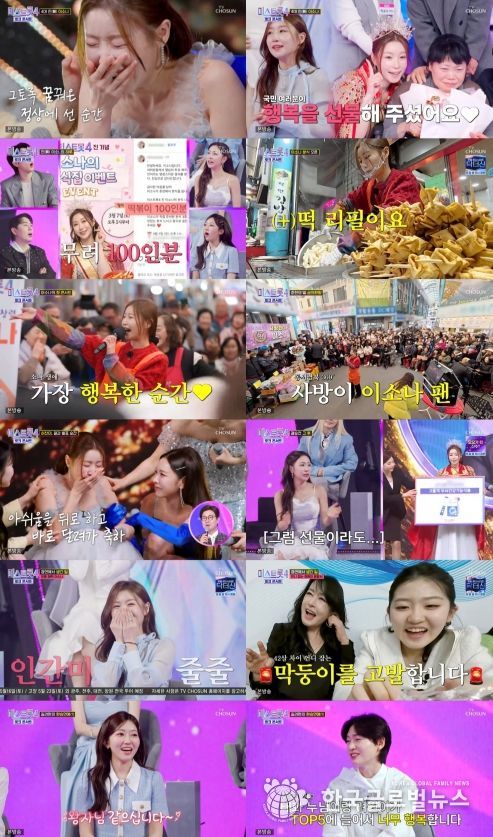 이날 가장 먼저 포착된 건 '미스트롯4' 결승전 발표 당일, 진(眞) 이소나의 순간이었다. 중간발표에서 선(善) 허찬미에게 단 1점 차로 뒤져 있던 상황에서, 실시간 문자 투표를 통해 극적인 역전에 성공한 이소나는 최종 우승이 확정되자마자 그 자리에 주저앉아 눈물을 쏟아냈다. 장윤정은 이를 지난 경연에서 가장 기억에 남는 순간으로 꼽으며 "우리가 소나 씨를 'AI' 같다고 했는데, 그런 그녀의 눈에서 폭포수 같은 눈물이 흐르던 게 인상 깊었다"라고 전했다.