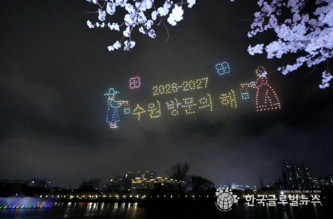 (한국글로벌뉴스 - 박소연 기자) 세계관개시설물 유산인 만석거 일대를 빛으로 수놓는 ‘2026 만석거 새빛축제’의 메인행사인 드론쇼, 불꽃쇼가 4~5일 열려 시민들의 발길을 끌었다.