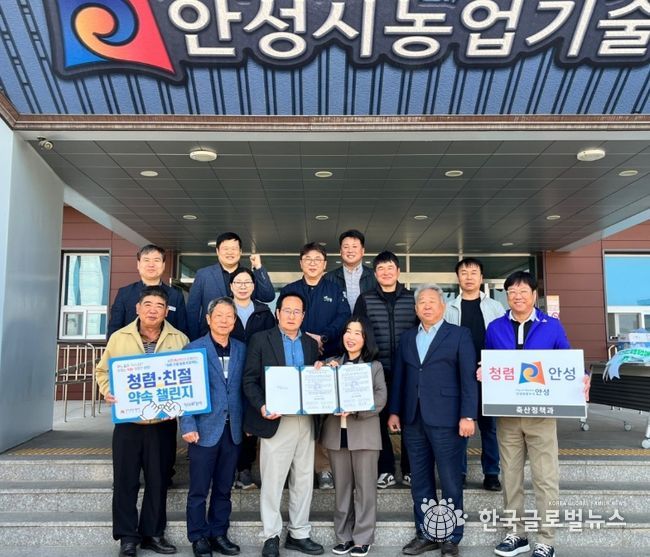 (한국글로벌뉴스 - 박소연 기자) 안성시 농업기술센터 축산정책과가 지역 축산단체들과 손잡고 투명하고 공정한 행정 실현을 위한 '청렴 행보'에 본격적으로 나섰다. 시는 지난 4월 2일, 안성시 축산단체협의회와 함께 청렴 협약식을 개최하고 신뢰받는 축산행정 구현을 위한 협력 기반을 강화했다고 밝혔다.