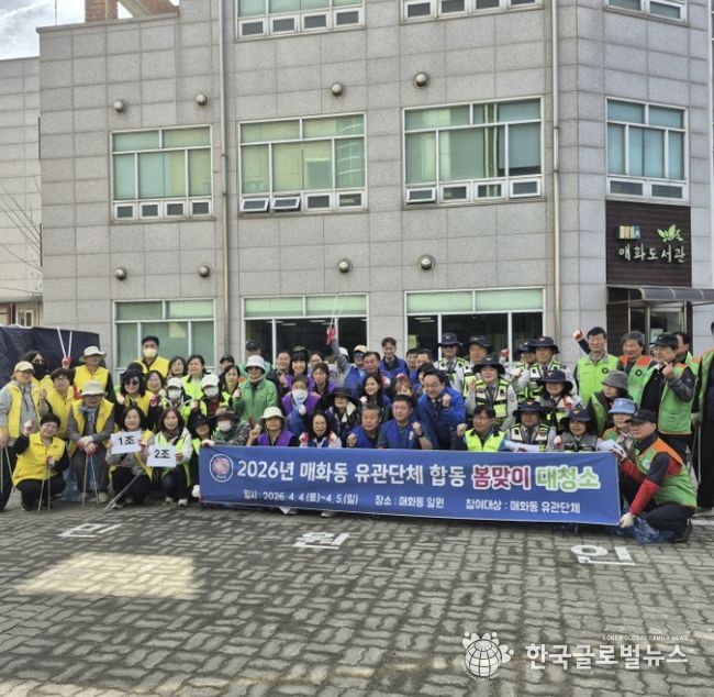 (한국글로벌뉴스 - 박소연 기자) 시흥시 매화동 행정복지센터는 10개 관계단체와 함께 지난 4월 4일부터 5일까지 매화동 일원에서 봄맞이 대청소를 하며 마을 환경정비에 힘썼다.
