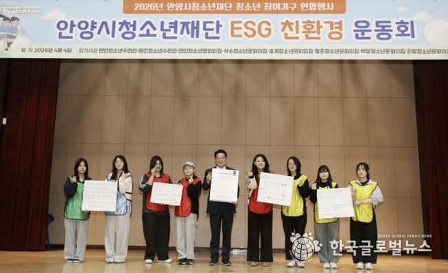 (한국글로벌뉴스 - 박소연 기자) 안양시청소년재단은 지난 4일 평촌과학기술고등학교 체육관에서 재단 소속 자치조직 청소년 170명이 참여한 가운데 ‘ESG 친환경 운동회’를 개최했다고 7일 밝혔다.
