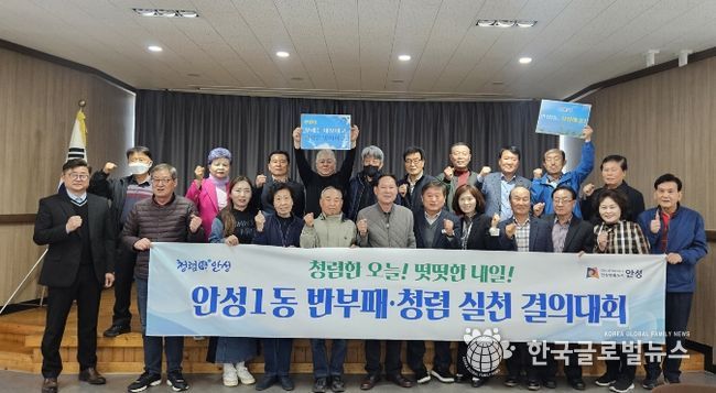 한편, 안성1동은 이번 통장협의회를 시작으로 주민자치회, 부녀회, 노인회, 방위협의회 등 관내 주요 사회단체와 함께 릴레이 청렴결의대회를 순차적으로 추진해 공정하고 투명한 행정 문화를 정착시켜 나갈 계획이다.