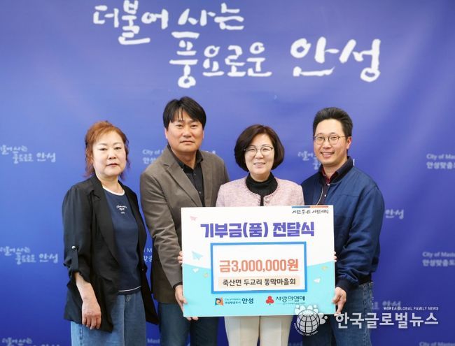 (한국글로벌뉴스 - 박소연 기자) 안성시 죽산면 두교리 동막마을회가 지역사회 발전과 복지 증진을 위해 현금 300만 원을 안성시에 기부했다.