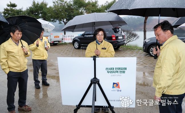 이어 9일에는 공도읍 건천리 일대 저지대 침수 우려 지역과 금광면 장죽리 산사태 우려 지역 등을 찾아 현장점검을 실시했다. 김보라 시장은 각종 위험 요인을 직접 확인하며 대응 상황을 점검했고, 시민 피해가 발생하지 않도록 철저한 관리와 예방을 주문했다.